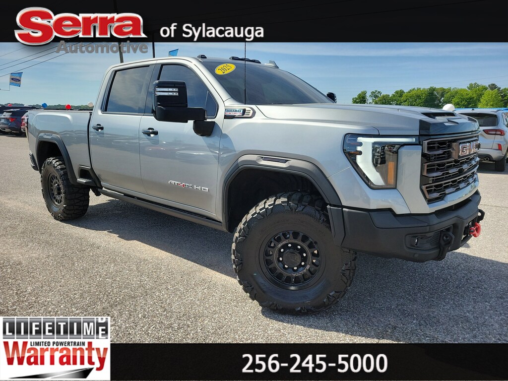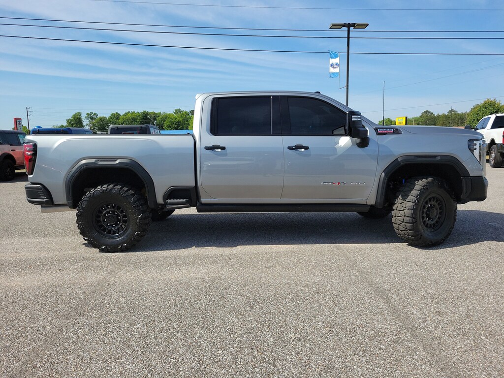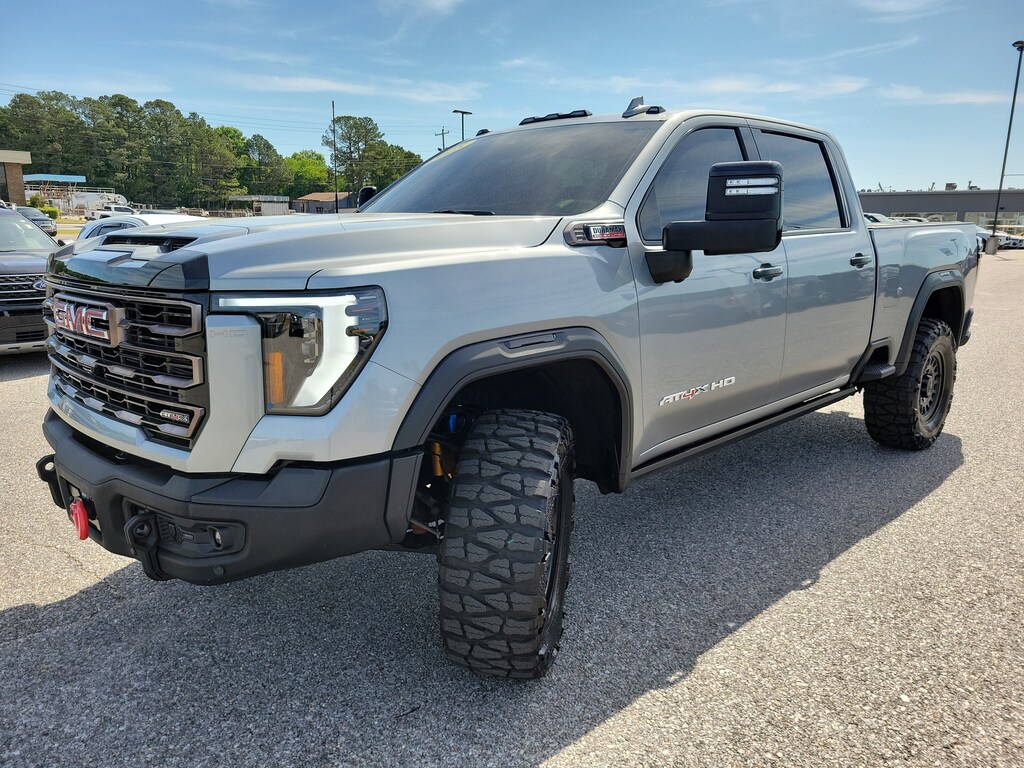 Sterling Metallic 2025 GMC Sierra 2500HD AT4X 4WD 10-Speed Automatic Duramax 6.6L V8 Turbodiesel Recent Arrival! Odometer is 14274 miles below market average! 10-Speed Automatic, 4WD, Obsidian Rush Leather.